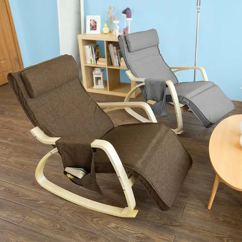 SoBuy® FST18-DG Rocking Chair, Fauteuil à bascule avec repose-pieds design, Fauteuil berçante, Bouleau Flexible
