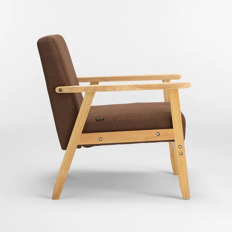 Essentiel par sa forme et avec une forte référence à la nature, ce fauteuil inspiré du mobilier nordique des années 50 trouvera facilement sa place dans un salon de style scandinave et moderne, mais aussi dans un environnement à la saveur plus classique, s’adaptant parfaitement aux meuble déjà présent dans la maison. La structure est en bois massif avec une stabilité caractéristique et un aspect clair et naturel qui réchauffe immédiatement l’ameublement du salon, tout en créant un contraste agréable avec les couleurs du tissu. Le dossier légèrement incliné est large et doux, idéal à la fois pour lire et plus simplement pour se détendre, avec les accoudoirs et le rembourrage en mousse épaisse qui offrent ensemble un confort optimal en toute occasion. La housse en tissu est douce au toucher et résiste bien à un usage quotidien.