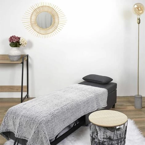 Structure en bois et métal, revêtues de tissu 100% polyester coloris gris.