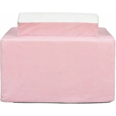 Revêtement tissu 100% polyester coloris rose, garnis de mousse polyuréthane. Longueur matelas lorsque fauteuil ouvert : 90 cm.