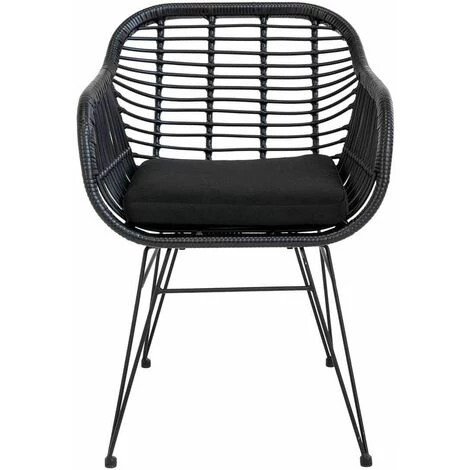 Piétement en acier coloris noir. Revêtement assise en polyéthylène imitation rotin coloris noir.