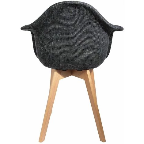 Piétement en hêtre massif, coloris naturel. Assise et dossier revêtus de tissu synthétique coloris noir à grosses mailles. Hauteur d’assise : 48cm.