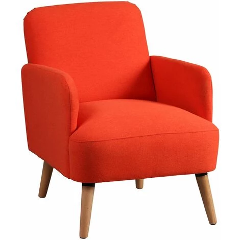 Structure en pin et contreplaqué. Pieds en manguier massif. Revêtement tissu orange 100% polyester.