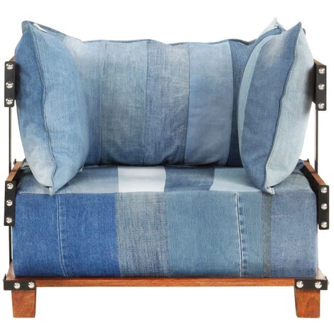 Ce canapé simple sera un excellent complément à votre espace de vie. Le cadre en bois de manguier massif et le tissu en jean patchwork rendent ce canapé non seulement solide, mais aussi esthétique. De plus, les coussins inclus et le design ergonomique rendent le fauteuil extrêmement confortable et en feront votre endroit préféré pour vous détendre.