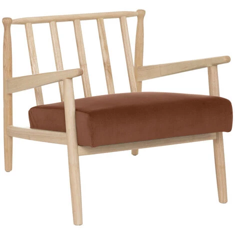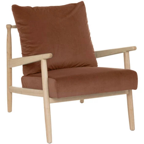 Atmosphera – Fauteuil en Velours Terracotta et pieds en Bois d’Hévéa (-)