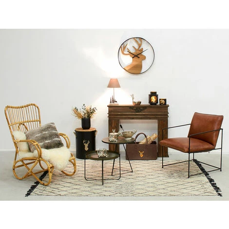 - Fauteuil en cuir de buffle pleine fleur et métal