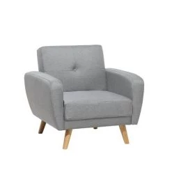 Fauteuil dossier réglable en tissu gris moderne. Ce fauteuil combine le style rétro et le confort avec sa double fonctionnalité ! Doté de boutons, ce fauteuil en tissu polyester gris durable est une solution idéale pour votre coin relaxation. Son siège large et généreusement rembourré offre une assise confortable et, grâce au dossier réglable, vous pouvez facilement vous mettre en position assise ou en position allongée.