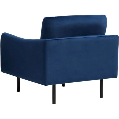 Fauteuil moderne en velours bleu marine. Ce fauteuil élégant et confortable apportera un plus non négligeable dans votre intérieur. Avec son revêtement bleu marine de haute qualité et ses pieds ronds, le canapé respire le charme rétro et s’adapte parfaitement aux styles d’intérieur vintage, modernes et éclectiques.