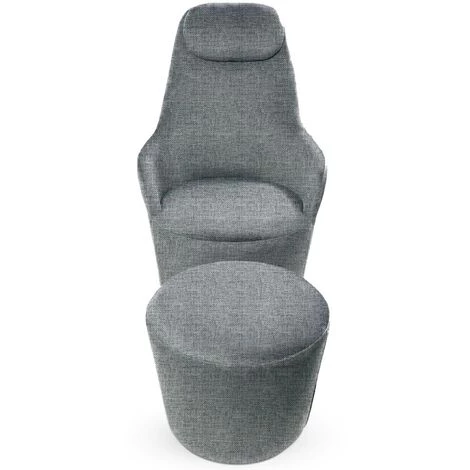 Fauteuil avec haut dossier, confortable avec pouf en tissu