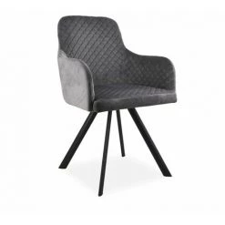 Le fauteuil Izenia est fabriqué avec polyester de haute qualité et structure en métal noir. Le revêtement en gris foncé a le patron de losanges, très doux à toucher. La hauteur de l’assise est de 46,5 cm. Poids maximum 160 kg. Pieds à assembler. L’élection parfaite pour un look moderne et sophistiqué.
