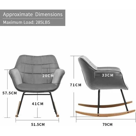 DéCOSHOP26 Fauteuil à Bascule Chaise Lounge Design En Velours Gris Pieds En Métal Et Bois – Gris