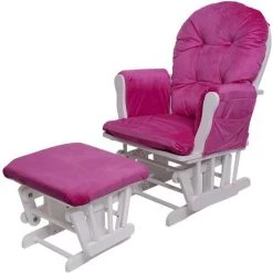 DéCOSHOP26 Fauteuil Chaise à Bascule Rocking Chair Avec Repose-pieds Relaxation Design Rustique En Bois De Bouleau Blanc Et Tissu Velours Rose – Rose