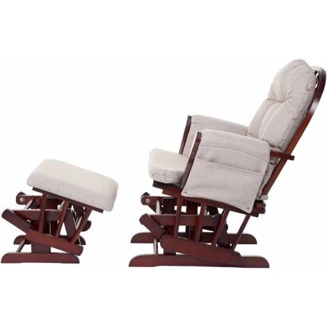 Fauteuil chaise à bascule rocking chair avec repose-pieds relaxation design rustique en bois de bouleau et tissu
