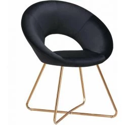 DéCOSHOP26 Fauteuil Chaise Lounge Design En Velours Noir Pieds En Métal Doré – Noir