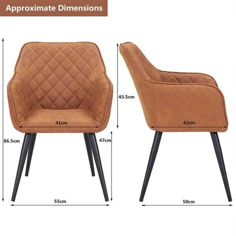 Fauteuil lounge / chaise de salle à manger en tissu aspect cuir marron orangé pieds métal