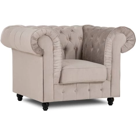 Succombez au design mythique de notre fauteuil chesterfield en velours beige WILSTON.