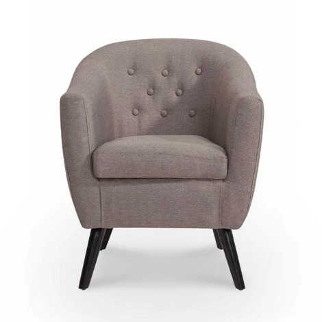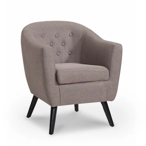 Ce modèle en tissu marron reprend toutes les caractéristiques d’un fauteuil vintage scandinave.