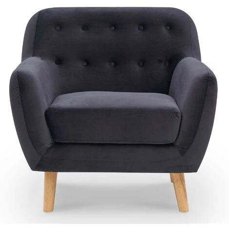 Craquez pour le fauteuil capitonné scandinave en velours noir VIKY.