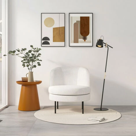 Vous l’aurez compris, chez Drawer on adore le tissu bouclette et les formes arrondies. Et Oleiv, le fauteuil rond en tissu bouclette et métal, ne fait pas exception à la règle.