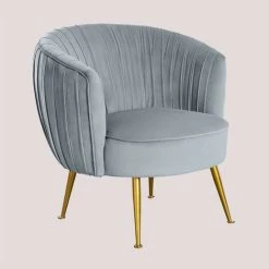 Le fauteuil en velours Alima vous séduira par son design original et unique. Un siège confortable et élégant composé de pieds en fer qui le rend résistant et d’un revêtement en velours qui lui confère un confort et une exclusivité supplémentaires. Un bijou qui nous rappelle le pur style vintage et qui donnera à votre maison une touche distinctive très caractéristique. N’y pensez plus et remplissez ce coin vide de votre salon avec cette pièce et profitez plus que jamais de moments de détente et de repos.Nous vous recommandons de le nettoyer avec un chiffon humide et d’éviter l’utilisation de produits chimiques. Dimensions (Hauteur x Largeur x Profondeur): 71 cm x 72 cm x 70 cm IMPORTANT : Le service standard porte-à-porte ne comprend pas la livraison et la collecte des marchandises au domicile du client, qui sont à la charge de ce dernier. Il est possible que le livreur aide volontairement à la livraison de la marchandise (ceci est totalement volontaire pour le livreur et la société de transport et ne relève pas de la responsabilité de Sklum).L’assemblage n’est pas non plus inclus.