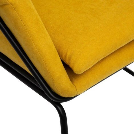 Le siège repose sur un piètement luge en métal tubulaire rendu actuel par une finition métallisée qui contraste avec le tissu sombre velouté.
