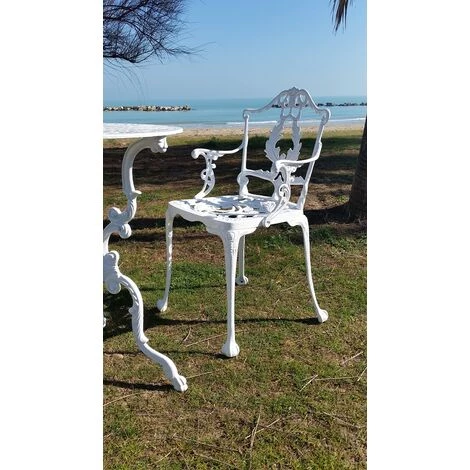Fauteuil Laura en fonte d’aluminium, avec accoudoirs.