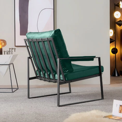 CONCEPTION CONFORTABLE: Ce fauteuil est exquis et unique. L’accoudoir en velours est lisse. 105 degrés entre le coussin et le dossier, ce qui, conformément à l’angle de confort ergonomique, vous permet de vous sentir à l’aise lorsque vous lisez ou buvez. Le coussin en éponge rembourré et épaissi vous permet de vous sentir détendu et confortable sur ce meuble en métal moderne.