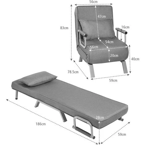 - ?? [Nombreuses Utilisations] Le design simple et élégant rend le fauteuil pliable adapté à la plupart des salons, des bureaux, des chambres, etc. Le fauteuil peut également être utilisé comme lit confortable pour les invités. Ce canapé peut vous soutenir de manière optimale dans toutes vos activités quotidiennes telles que la lecture, la télévision, le travail, le sommeil, etc.