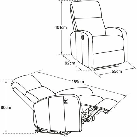 – Totales : L 92 à 159 × l 65 × H 80 à 101cm