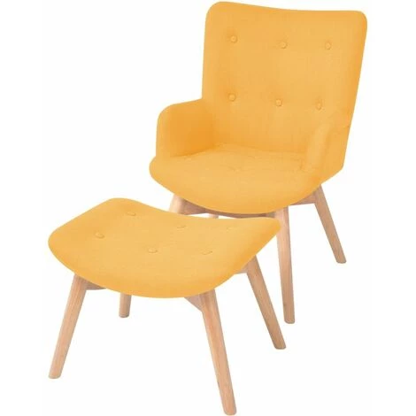 Présentation produit: Fauteuil chaise siège lounge design club sofa salon avec repose-pied tissu jaune