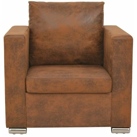 Présentation produit: Fauteuil chaise siège lounge design club sofa salon cuir daim artificiel marron
