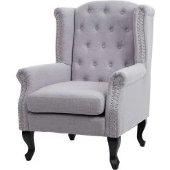 Fauteuil de luxe Chesterfield, fauteuil à oreilles, tissu hydrofuge ~ gris sans ottomane