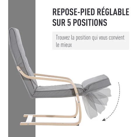 Ce joli fauteuil relax avec repose-pied réglable et structure en bois massif de bouleau apportera une touche scandinave chaleureuse à votre intérieur.