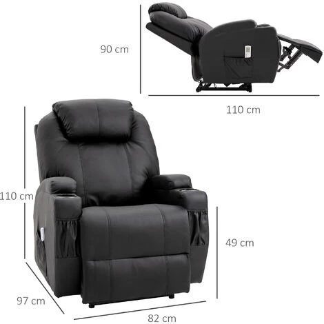 – Fauteuil de massage relaxation doté de 8 points de massage par vibration, dont 4 points pour le dos, 2 points au niveau des cuisses et 2 points au niveau des mollets