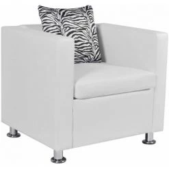 Ce fauteuil en cuir synthétique de qualité offre un confort d’assise optimal. Avec un design de cube moderne, c’est un excellent choix pour apporter du style à votre maison. Ce fauteuil cubique prend peu de place et offre des lignes simples pour décorer n’importe quelle pièce classique ou moderne. Ce fauteuil dispose d’un large surface d’assise et d’un coussin épais pour un confort optimal. Le fauteuil est rembourré avec du cuir synthétique de haute qualité et durable qui est résistant et facile à nettoyer. Son design simple est élevé par l’excellente couture. Le fauteuil cubique est bien construit avec des pieds robustes qui donnent de la durabilité. La livraison inclut 1 fauteuil et 1 oreiller lâche.