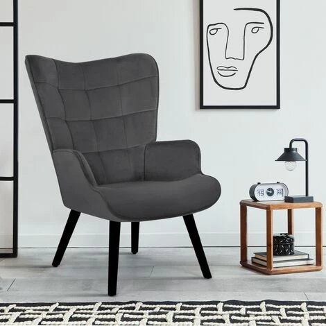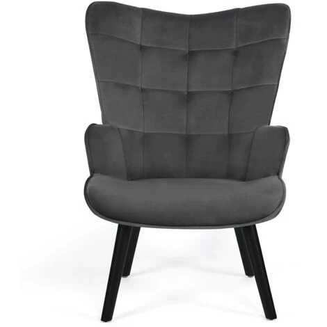 IDMARKET Fauteuil Scandinave ANIA En Velours Gris