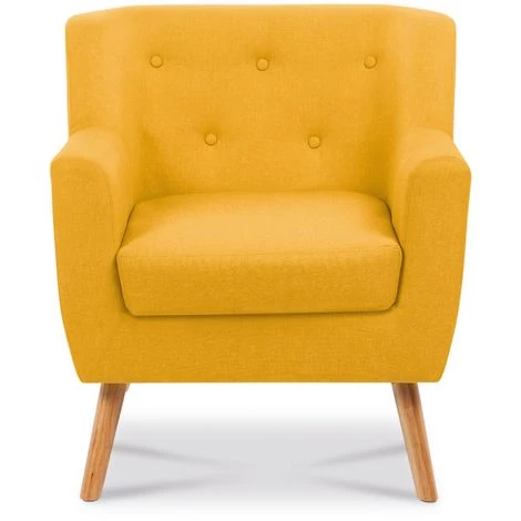 Descriptif du fauteuil jaune moutarde chinéAdoptez la tendance chic de la décoration nordique, grâce à ce fauteuil scandinave jaune moutarde chiné. Avec ses belles formes arrondies, le fauteuil nordique jaune moutarde ID Market est le parfait mélange de l’élégance et du confort. Avec une belle assise rembourrée et deux accoudoirs confortables, ce meuble sera le parfait compagnon de vos moments de lecture au calme.Vous recevez dans votre salon ? Le fauteuil jaune moutarde que vous propose ID Market s’associera aisément à votre canapé pour créer un espace cosy, idéal pour de longues discussions ou pour visionner un film avec vos invités. Choisissez le bon emplacement pour ce meuble tendance ! Proche de la fenêtre pour profiter de la luminosité, en face d’une télé, en diagonale de l’espace salon pour jouer son rôle de fauteuil d’appoint…. Il existe de nombreuses possibilités.Craquez pour ce fauteuil scandinave jaune moutarde chiné et son look intemporel. Pour un intérieur personnalisé et créer un véritable cocon de confort, agrémentez-le d’un ou deux coussins colorés, ou bien d’un plaid doux et chaud. Vous aimez l’association du bois et du tissu jaune ? Alors adoptez un fauteuil style scandinave, pour un intérieur tendance et cosy.Son revêtement en tissu 100 % polyester capitonné et ses 5 boutons aux finitions travaillées achèvent de parfaire son design simple et élégant. Pour un entretien facilité, le coussin moelleux et épais est totalement amovible, idéal pour un nettoyage simple et efficace.Dimensions du fauteuil scandinaveMatériaux : structure en bois (hévéa)Pieds bois avec patins de protectionScratch antiglisse sous le coussin amovibleGarnissage : mousse polyuréthane (recyclée et non recyclée)Dimensions totales : Longueur 79.5 cm x largeur 76 cm x hauteur 78 cmDimensions de l’assise : Longueur 50 cm x largeur 50 cm x épaisseur 10 cm (Densité de la mousse : 48 kg / m3)Dimensions des accoudoirs : largeur 11 cm x Hauteur 40 cm (Densité de la mousse : 20 kg / m3)Hauteur du dossier à partir du coussin : 40 cm (Densité de la mousse : 22 kg / m3)Hauteur des pieds : 23 cmRevêtement en tissu 100% polyester capitonné 5 boutons coloris jaune moutarde chinéColoris disponibles sur notre boutique en ligne :BLEU CANARDJAUNE MOUTARDEGRIS ANTHRACITELIVRAISON EN FRANCE METROPOLITAINE UNIQUEMENT (HORS CORSE – HORS BELGIQUE) – HORS CORSE -article non livrable en Corse