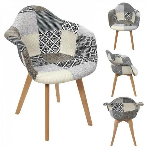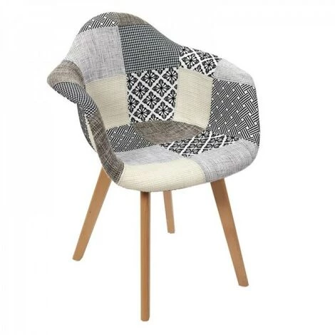 fauteuil patchwork gris_x000D_- Assortiment: assise,_x000D_- Marque: HOME DECO FACTORY_x000D_- Dimension (cm): 85x59x63.8_x000D_- Matériaux: bois – hetre_x000D_- Couleurs: blanc gris marron