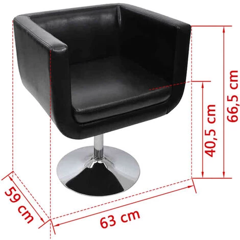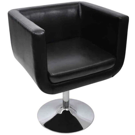 Notre fauteuil pivotant est un meuble élégant avec des lignes nettes et pures et un design chic. Il est parfait pour tout salon, dortoir ou bureau ! Le siège rembourré, moderne et réglable en hauteur, est recouvert de cuir artificiel de haute qualité conçu pour offrir un confort parfait. Le dossier de niveau intermédiaire offre un bon soutien à la colonne vertébrale inférieure. Le tube en acier chromé fournit une construction solide. Innovante dans la conception et intrigante dans le style, cette chaise est sûre de prendre votre salon au prochain niveau !Couleur : noirTaille globale : 63 x 59 x (66,5-75,5) cm (L x l x H)Hauteur du siège à partir du sol : 40,5-50,5 cmTaille du siège : 44 x 46 cm (L x l)Matériau : cuir artificiel (surface), acier chromé (base)Matériel: Coton: 4%, Polyester: 2%, PVC: 94%Nous ne livrons pas en Corse.
