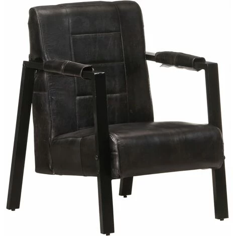LES TENDANCES Fauteuil 60x80x87 Cm Noir Cuir De Chèvre Véritable