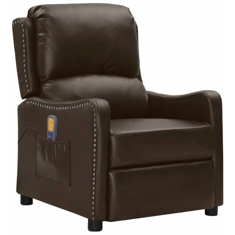 LES TENDANCES Fauteuil De Massage Inclinable Marron Similicuir Brillant