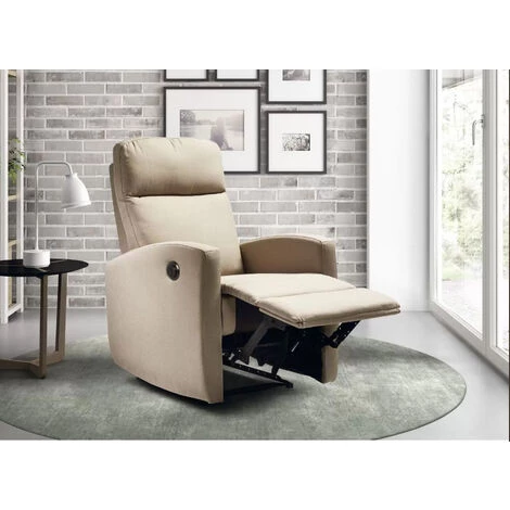 Le fauteuil de relaxation électrique proposé avec un revêtement en tissu de couleur beige de la collection Kali s’intégrera parfaitement à votre intérieur. Son mécanisme manuel supporte un poids de 120 kg. Couleur : beigeRevêtement : toile 100% polyesterArmature : bois massif avec des équerres renforcées.Suspension de l’assise : ressorts métalliques zig-zag entrelacées.Suspension du dossier : sangles de haute résistance.Assise : mousse polyuréthane de densité 28 kg/m3Dossier : fibres creuses vierges siliconéesAccoudoirs : mousse polyuréthane de densité 28 kg/m3.Mécanisme de relax électrique incorporé grâce à un bouton latéral pour l’ouverture et l’inclinaison du repose-pieds et du dossier avec arrêt sur quelques positions.Résistance maximum 120 kg. Connexion avec transformateur.Dimensions du fauteuil fermé (Lxlxh) : 67 x 80 x 105 cmDimensions du fauteuil ouvert (Lxlxh) : 67 x 147 x 90 cmFauteuil 1 mécanisme relax manuel.Poids : 27 kgGarantie 5 ans – Fabrication EspagneCe produit est livré montéNous ne livrons pas en Corse.