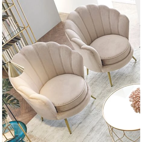 LES TENDANCES Fauteuil En Polyester Avec Effet Velours Gris Clair Gaia