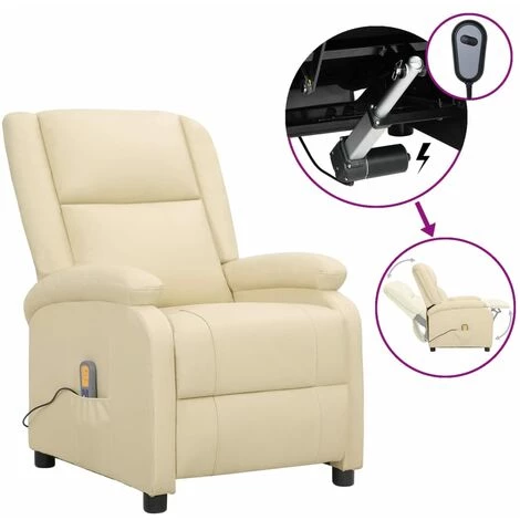 LES TENDANCES Fauteuil Inclinable De Massage électrique Crème Cuir Véritable