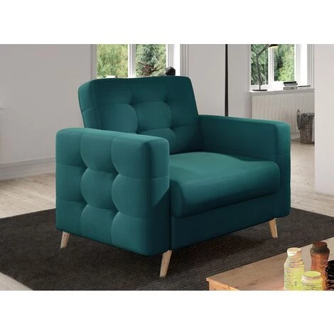 Le fauteuil en velours matelassĂ© bleu canard Anska au design classique enrichira n’importe quel espace de la maison. Le fauteuil a une assise profonde et lisse, un matelassage dĂ©coratif sur les pieds et Ă l’arriĂšre du meuble. L’ensemble est incroyablement lĂ©ger, grĂące aux pieds en bois tournĂ©, qui ajoutent une dimension Ă©lĂ©gante. Ce fauteuil, selon vos prĂ©fĂ©rences, peut ĂȘtre placĂ© dans une chambre, un salon ou un bureau. Il est disponible dans une large gamme de couleurs. Coloris : bleu canard et naturelLongueur : 107 cmProfondeur : 92 cmProfondeur d’assise : 46 cmHauteur : 86 cmHauteur du fauteuil sans coussins : 73 cmHauteur d’assise : 44 cmPoids : 33 kgRevĂȘtement : velours italien haute qualitĂ© – 100% polyester – Garnissage poids : 430 g/mÂČ. – RĂ©sistance du revĂȘtement Ă l’abrasion – ImpermĂ©able – Tissu inflammable et anti-taches – Traitement hydrofuge et anti-taches – Les coussins sont amovibles et dĂ©houssables – Lavage en machine Ă froid 30° ou Ă la mainMatiĂšre et densitĂ© dossier assise : – Assise : Mousse polyester 30 kg/mÂł HR – Dossier et accoudoirs : 25 kg/mÂł HR – Rembourrage : Ressort ondulĂ© Mousse de haute qualitĂ© et hautement Ă©lastiquePiĂ©tement: bois hĂȘtre naturelFabrication europĂ©enne – Garantie 5 ansLivraison par 1 livreur dans la piĂšce de votre choix sur prise de RDV Ă votre convenance.1 colis de 108x85x93 cmNous ne livrons pas en Corse.