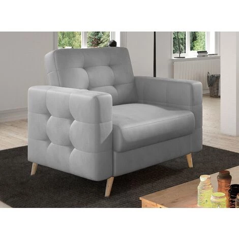 Le fauteuil en velours matelassé gris clair Anska au design classique enrichira n’importe quel espace de la maison. Le fauteuil a une assise profonde et lisse, un matelassage décoratif sur les pieds et à l’arrière du meuble. L’ensemble est incroyablement léger, grâce aux pieds en bois tourné, qui ajoutent une dimension élégante. Ce fauteuil, selon vos préférences, peut être placé dans une chambre, un salon ou un bureau. Il est disponible dans une large gamme de couleurs. Coloris : gris clair et naturelLongueur : 107 cmProfondeur : 92 cmProfondeur d’assise : 46 cmHauteur : 86 cmHauteur du fauteuil sans coussins : 73 cmHauteur d’assise : 44 cmHauteur des pieds : 10 cmPoids : 33 kgRevêtement : velours italien haute qualité – 100% polyester – Garnissage poids : 330 g/m². – Résistance du revêtement à l’abrasion – Imperméable – Tissu inflammable et anti-taches – Traitement hydrofuge et anti-taches – Les coussins sont amovibles et déhoussables – Lavage en machine à froid 30° ou à la mainMatière et densité dossier assise : – Assise : Mousse polyester 30 kg/m³ HR – Dossier et accoudoirs : 25 kg/m³ HR – Rembourrage : Ressort ondulé Mousse de haute qualité et hautement élastiquePiétement: bois hêtre naturelFabrication européenne – Garantie 5 ansLivraison par 1 livreur dans la pièce de votre choix sur prise de RDV à votre convenance.1 colis de 108x85x93 cmNous ne livrons pas en Corse.