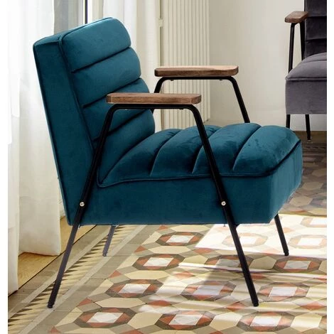 D’un beau bleu, ce fauteuil sera la touche de couleur qu’il vous faudra dans votre intérieur. Avec une structure en bois de pin, des pieds en acier et des accoudoirs en bois de caoutchouc, il est réellement solide et saura braver le temps. Vous serez bien installé dans ce fauteuil.Matière : Polyester effet veloursCouleur : BleuDimensions : L 60 x P 70 x H 78 cmFabrication : EspagneGarantie : 2 ansNous ne livrons pas en Corse.