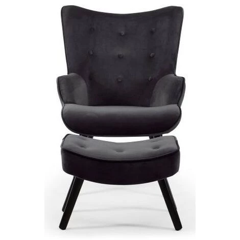 Ce fauteuil avec repose pieds est idéal pour tous ceux qui souhaitent allier confort et design scandinave. Une assise moelleuse avec dossier haut pour le fauteuil, et un support rembourré, légèrement incurvé pour le pouf qui l’accompagne si joliment. Dimensions du fauteuil : L 64 x H 100 x P 48 cmDimensions de pouf : L 49 x H 39 x P 35 cmTaille : 1 placeCouleur : NoirMatériau : Velours et bois massifA monter soi-mêmeNous ne livrons pas en Corse.
