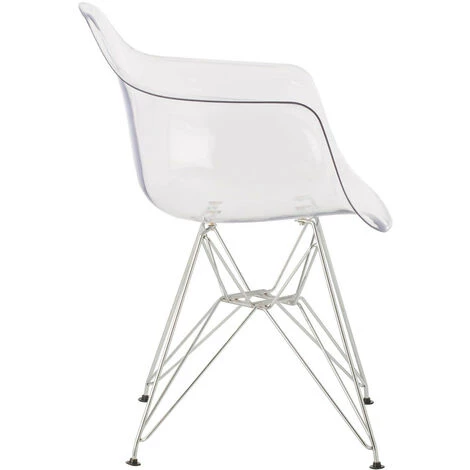 Ce fauteuil moderne et confortable est proposé avec un dossier et une assise en polycarbonate transparent de haute qualité et une structure en acier métal chromé.Ce fauteuil design supporte un poids jusqu’à 150 kg Des bouchons antidérapants et anti-rayures sont compris.L 63 x H 82 x P 44 cm – 5 kgHauteur de l’accoudoirs : 69 cmLargeur de l’assise : 46,5 cmHauteur de l’assise : 45 cmProfondeur de l’assise : 44 cmAssemblage : pieds à monterAssise polycabonate transparenteStructure métallique chromé robuste et résistante.Empilable : nonGarantie 2 ansNous ne livrons pas en Corse.