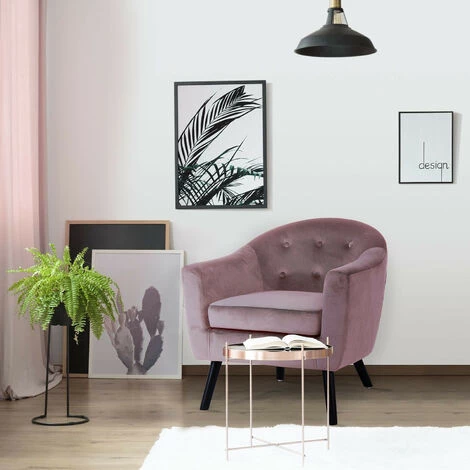 Robuste et très confortable, ce fauteuil en velours rose sera parfait pour donner du cachet à votre pièce. Son revêtement velours très doux s’associe harmonieusement avec ses pieds en bois massif noir.Modèle disponible en différents coloris.Revêtement VeloursPieds en bois massifL 78 x H 79 x P 73 cmHauteur d’assise 43 cmProfondeur d’assise 54 cmGarantie 2 ansLivré prêt à monter avec noticeDimensions colis : 78 x 69 x 60 cmNous ne livrons pas en Corse.